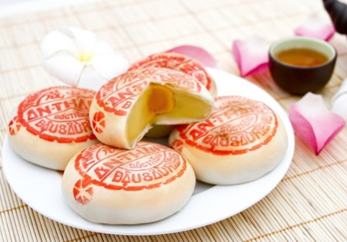 – Bánh pía khoai môn sầu riêng: gồm các nguyên liệu gồm khoai môn, bột mì, trứng vịt muối, đường và muối iot…